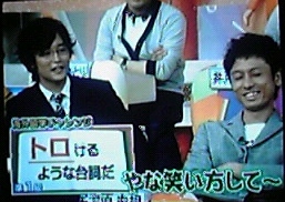 "平成教育学院1"をごらん下さい<(_ _)> 今回のチーム戦は 漢字検定準1級&1級の問題に挑戦!!! 皆さん悪戦苦闘してましたね~ 宇治原さんは 「ついたち」と「またたび」 を難なく正解ヾ(^▽^)ノ ![]() (流石としかいい様がないな…) 一方藤本さんは漢字が苦手な様で かなり苦戦してました。 (理系だから仕方ないよね!) 結局、劇団ひとりが 「自縄自縛」を読めずに 宇治原さん達が最下位に ![]() ![]() 宇治原「だって縄文時代の"縄"、知ってるでしょ 」ひとり「…今更言ってくるんじゃねぇよ!」←逆ギレ(笑) 宇治原「ちょっとあの~チーム替えを…していただければ」 高島アナ「劇団ひとり班は嫌だと…」 宇治原「いやですっ!」←キッパリすぎ (爆)なんだかんだで 今回は(も?)三浦さんと藤本君が優勝 ![]() 三浦さんは"オーストラリア" 藤本君は"韓国で焼肉と一緒にピーマンを焼いて食べたい"らしい。 因みに今回の漢検問題↓ 「トロけるような台詞だ」 藤本君は「柔」という字を書き、残念 ![]() 宇治原さん、それを見て笑う(酷)↓ 宇治原「全然違うで!コレ!」 水道橋「自分が書けた時より嬉しそう」 ・・・確かに (笑)三浦さんは「蕩」という字を書き見事正解 ![]() でも、海外短期留学の権利を宇治原さんに。 (前回出演時、宇治原さんに貰ったので) 三浦「絶対獲って返すんだって思っていたんで…」 (えらすぎるよ、三浦さん!!! )宇治原「遠慮なくいただきます!」←おい(笑) 三浦さんは、本当はイタリアに行きたかったけど 宇治原さんのために今回は オーストラリアを選択したとのこと。 (三浦さん、いい人過ぎる~~ ![]() )今回も不調で終わった宇治原さん。 藤本君がいるとやっぱダメなのかな?(笑) ども\(^o^)/